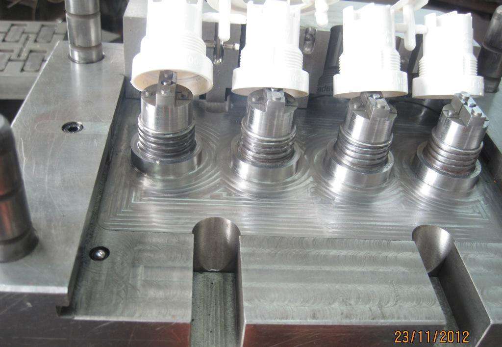 手動(dòng)的螺紋通常用在產(chǎn)品量比較少的模具上。這種模具每次下的訂單比較少。要求也不高,所以做模具的時(shí)候,把螺紋做在鑲件上,再做一個(gè)靠模,注塑的時(shí)候,先把鑲件放到模具里,等注塑完成后,把鑲件拿出來,放到靠模上,把產(chǎn)品旋轉(zhuǎn)出來。這種方式是應(yīng)對(duì)小批量的產(chǎn)品。